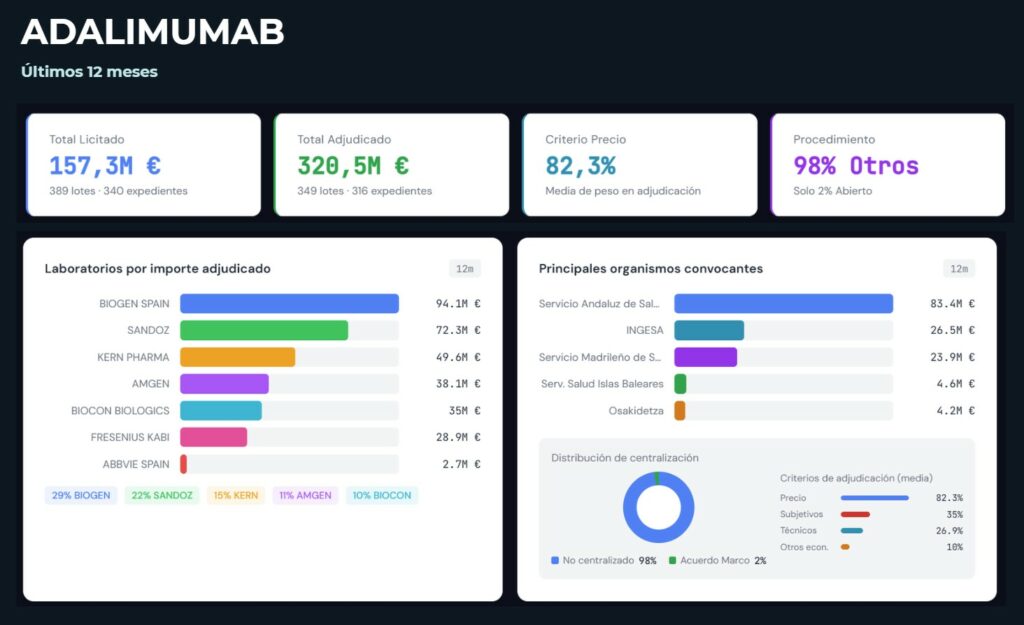 Analizamos la actividad completa de contratación pública de adalimumab en el SNS.
